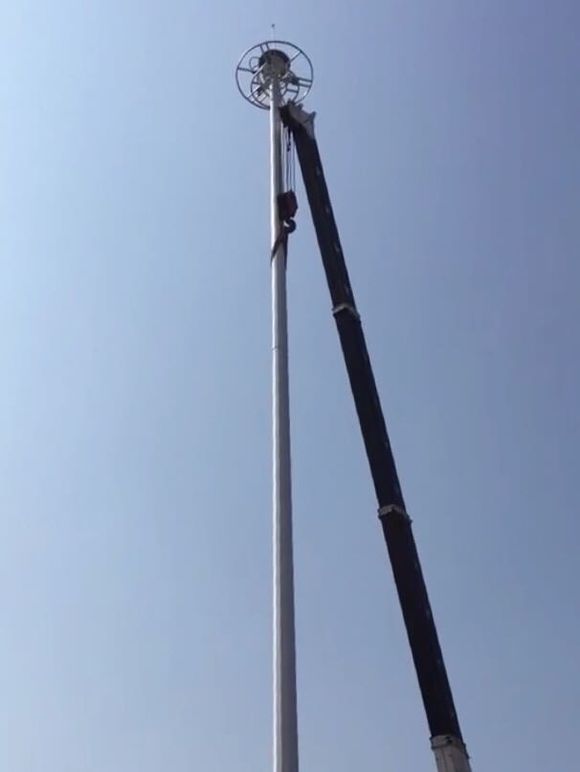 連云港新東方貨柜碼頭32米高桿燈,底部法蘭直徑2.3米